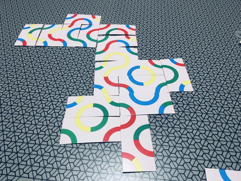 Игра с Сима ленд. Имеем 50 карточек с дорожками трёх цветов и особые карты. Каждому игроку выдаётся по 10 карт, 5 карт выкладываются в середине стола в столбик и игра начинается. Каждый берет из своей личной стопки три карты. Очерёдности хода нет. Все игроки одновременно стараются правильно соединить линии своих и выложенных на столе карт, каждый раз добирая в руку до 3-х карт. Задача сделать всё это быстрее других. Кто от всего избавился первый, тот и выиграл. Играем не часто, но детям нравится. Единственное, может возникнуть ситуация, когда Вы не можете выложить свою последнюю карту, потому что не находите совпадения в порядке линий. И просто смотрите, как соперники выкладывают , выкладывают, а Вам ни одна из этих вновь пришедших карт в линии не подходит. Вот про эту ситуации в правилах нет ни слова . Поэтому мы ввели своё дополнение, такую последнюю карту с руки кладём под низ не участвующих в игре карт и берём себе верхнюю. Если Вам кажется, что всё это очень просто, то все не так просто, как Вам кажется. Запутаться очень легко, внимательным нужно быть обязательно. Неплохая игра, совершенно необязательная к покупке. У нас не так много игр с Сима ленд, в эту поиграть приятно. Две партии пролетели, один раз выиграла я, второй раз- сын.