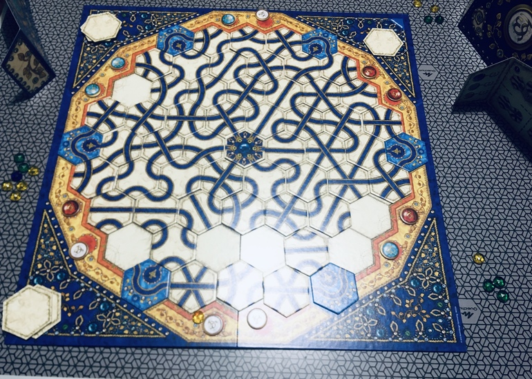 И мы просто не могли не достать её вслед. После скромной, гранитно-мраморной строгости Цуро, Индиго радовало глаз своей неописуемой, яркой красотой. Я, наверное, уже раз 100 в последнее время писала о своём повзрослевшем сыне. Сейчас тоже не могу молчать. Мне иногда казалось, что рядом сидит мой муж, который не равнодушен к Индиго, поэтому его методы игры мне хорошо знакомы. Так вот сын вчера играл , как взрослый человек. Обдумывал каждый ход и боролся за каждый камень. Нам с дочкой он просто не давал прохода. Выстраивал такие пути, что ближе к концу игры одним выложенным тайлом загнал в свои личные ворота сразу два камня. Причём один из них был синий.