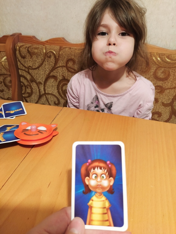 Игроки играют в закрытую-спрашивая в свой ход у других игроков карточки нужного персонажа. Но спрашивать нужного персонажа необходимо не с помощью слов, а с помощью мимики. Необходимо на себе показать эмоцию нужного персонажа, угадать сколько всего персонажей у другого игрока и если угадано все правильно, игрок заберает угаданное себе и продолжает угадывать. Если не угадал - берет новую карту из оставшейся колоды.