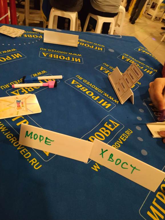 Ну, а дальше пошли играть. Вначале нас затянула к себе девушка, которая презентовала игру Намек понял. Играли втроем вначале, правила простые, если кто любит игры на ассоциацию, то она вам точно понравится. И мне, конечно, очень понравилось, все как я люблю - слова, ассоциации, компактная коробочка, да еще и правила простые. Игра на компанию., потом к нам присоединились еще трое взрослых, и вот тут то игра раскрылась. Мы прямо вошли в азарт, несмотря на то что с нами играл мой 12-летний сын, все играли в полную силу. Возможно рассмотрю ее к покупке, у нас есть друзья, которые тоже любят подобные игры. Правила в предыдущем посте подробно рассказала Ирина, не буду повторяться)