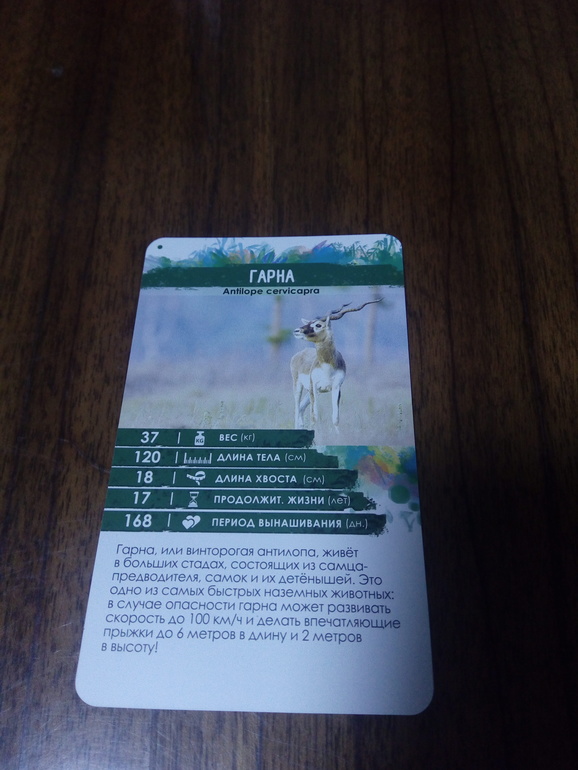 Мой друг выкладывает карту ,Сайгак, продолжительность жизни которого меньше, чем у Гарны. Значит значения на карточках должны уменьшатся.