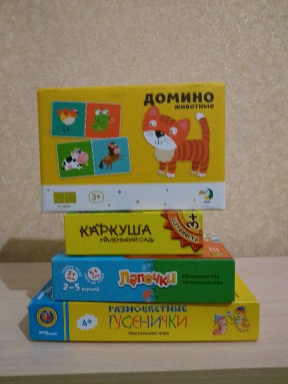 7. Собственно первые настолки - лото, домино, Каркуша маленький сад, Лапочки и Гусенички.