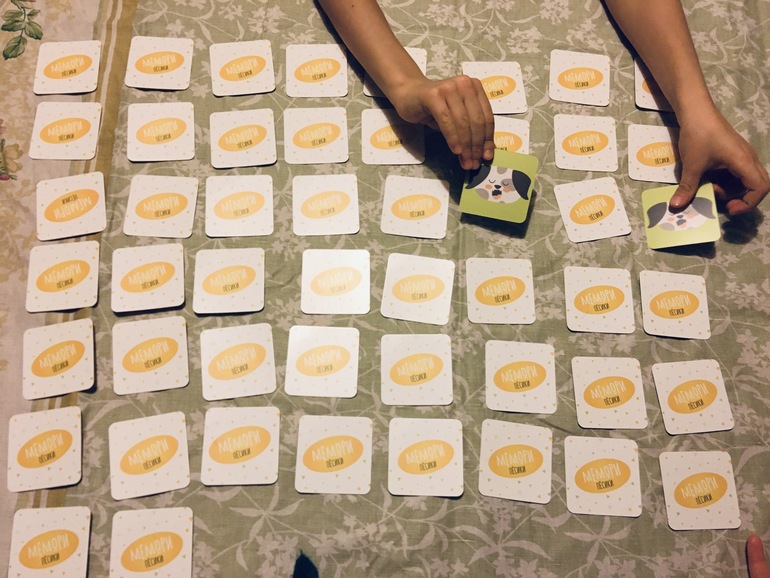 Как же мы их любим! И эти нежных цветов карточки, и милых пёсиков, и сам формат маленький и удобный. Всё в игре прелестно. Поиграли с удовольствием, выиграл сын. Он так ловко уже в середине игры находил пары, брал за раз по две-три комбинации. После пёсиков мы всегда играем в Мемори Котики, долго искали вчера их, но не нашли коробку. Уже утром я вспомнила, что брала котиков на утренник, чтобы ребята поиграли да так и осталась коробка в пакете. Так что сегодня обязательно будем играть в котят.