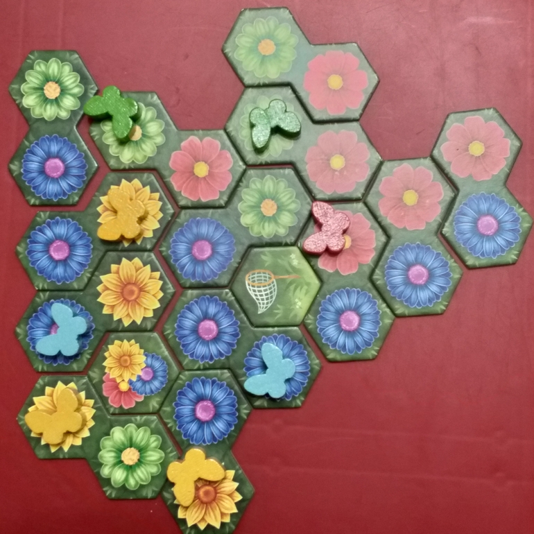 Клумба очень понравилась. Тоже на умножение. Но тут игра его честная была. Он у меня очень хорошо выставляет тайлы. Даже на игротеке, если игры с тайлами практически все выигрывает.