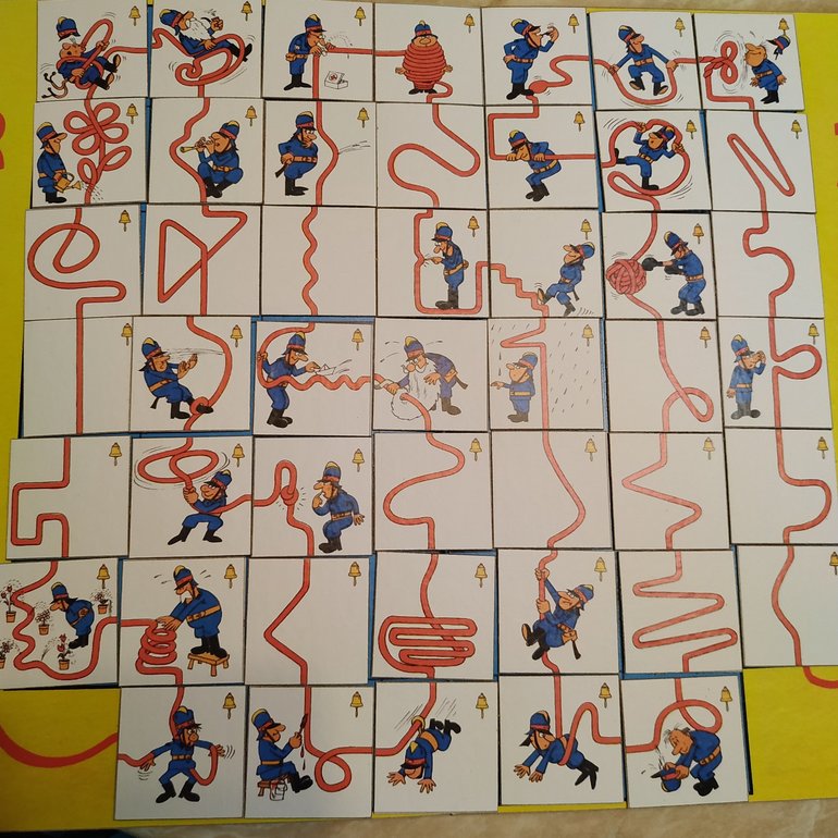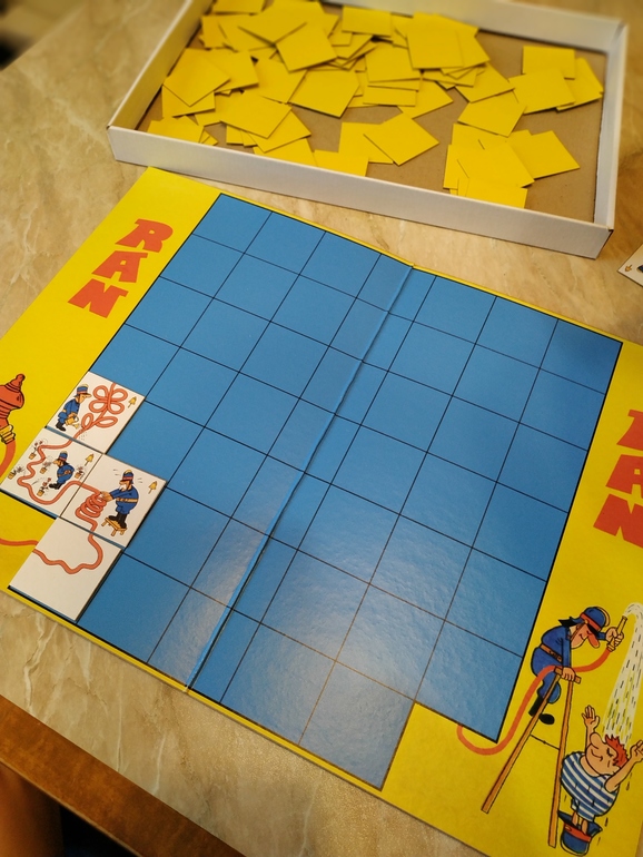 Эта игра неизвестно как появилась у нас в доме в 80-ых годах, я даже не помню на каком языке были там правила- на русском или немецком. Мы играли в нее так часто, что я пронесла в памяти всех пожарных с карточек, они буквально отпечатались у меня в голове.