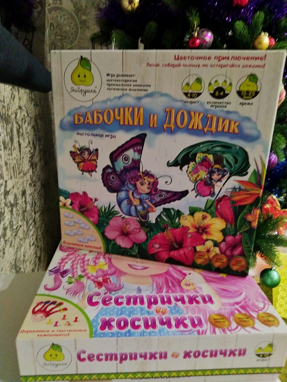 РазноеПод нашей ёлочкой тоже прятались две новые игры. "Сестрички и косички" и "Бабочки и дождик".