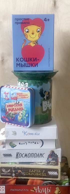Пока, кроме Билета, активно играем в новые карточные игры, с несложными правилами: День сырка, Мистигри, 7на 9, Wanted, Мемо новогоднее, Кескифе. Никак не дойдут руки до Парового осла и Бэнг меч самурая) Плбс играем в старые наши игры : Диксит, Пакля-рвакля, Монополия и др. А вообще масштаб бедствия выглядит после нового года вот так...)