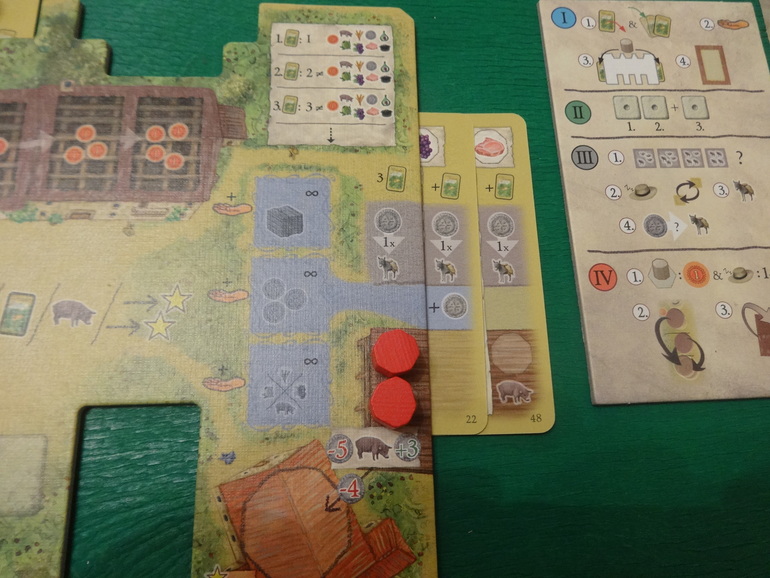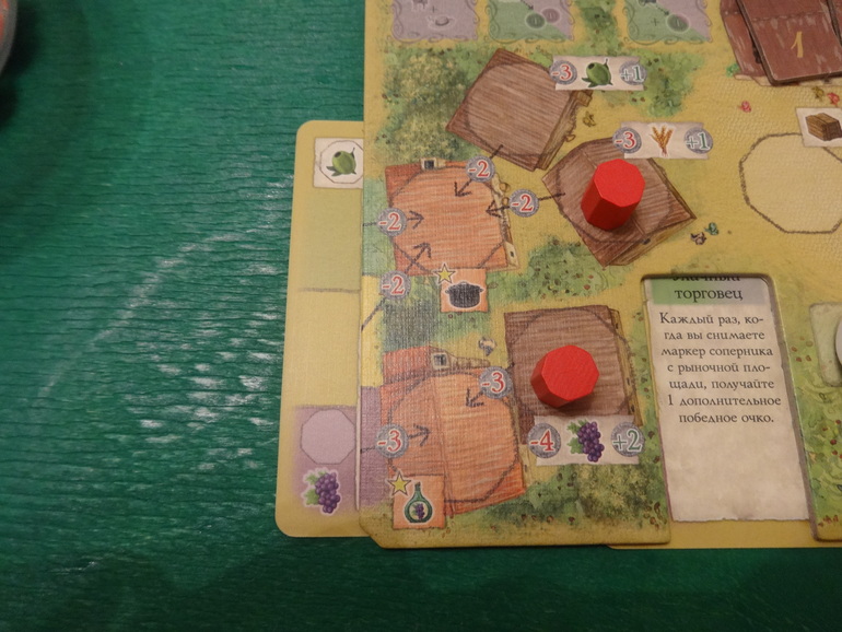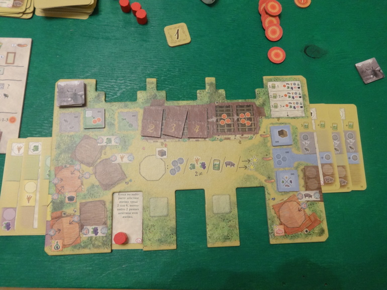 Сверху, и это ваши тележки, куда вы доставляете ваши продукты фермы. Именно заполнение тележек даёт львиную долю победных очков. Нужно стараться как можно чаще заполнять тележки. Тележки в этой игре своеобразные контракты, как, например, в Виноделии. Мне очень понравилось.