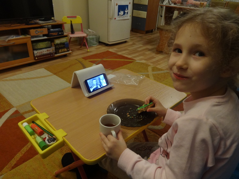 С Янухой сыграли в новую подаренную игру- Кто я. Играли не по правилам пати-гейма, а пока мама борщ варит, просто отгадывали по очереди карточки. В целом интересно, тем более что это подарок от работы:
