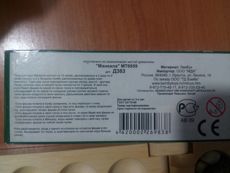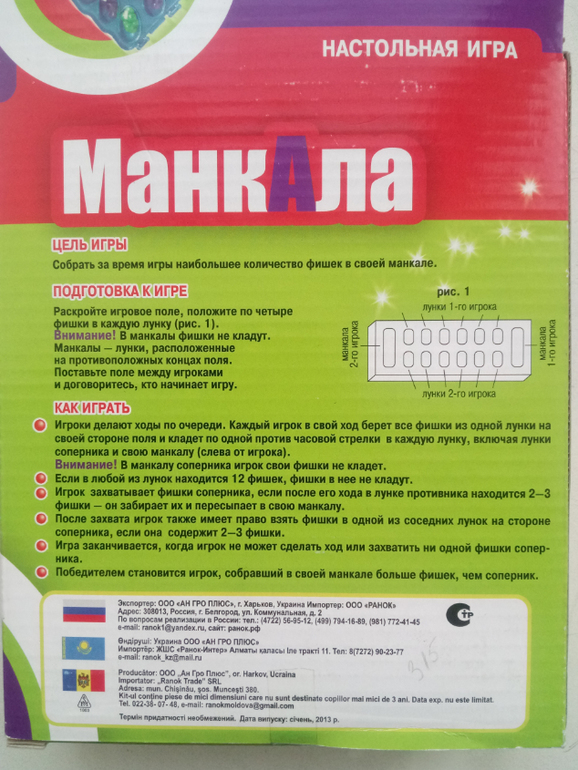 Правда, правила на коробке и внутри коробки немного разнятся.