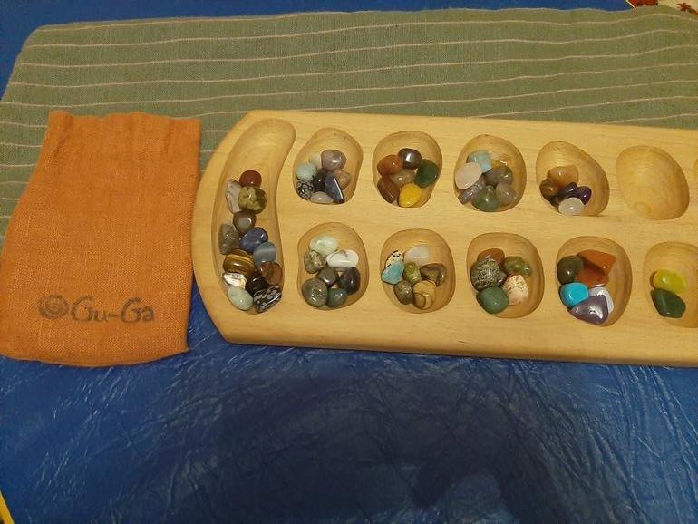 Я не про название, а про содержимое, чтобы камни самоцветы и гладкие деревянные лунки. Поедем летом на юг, насобираем рюкзак камней, а с самим калахом что-нибудь придумаем.