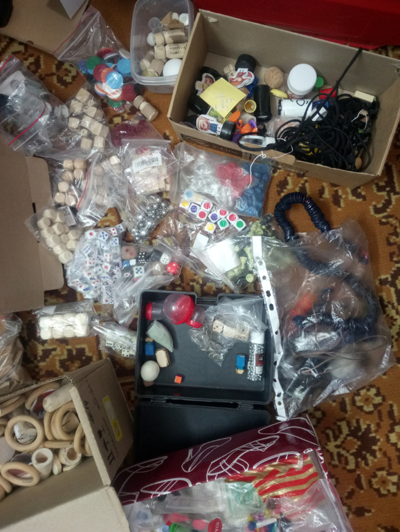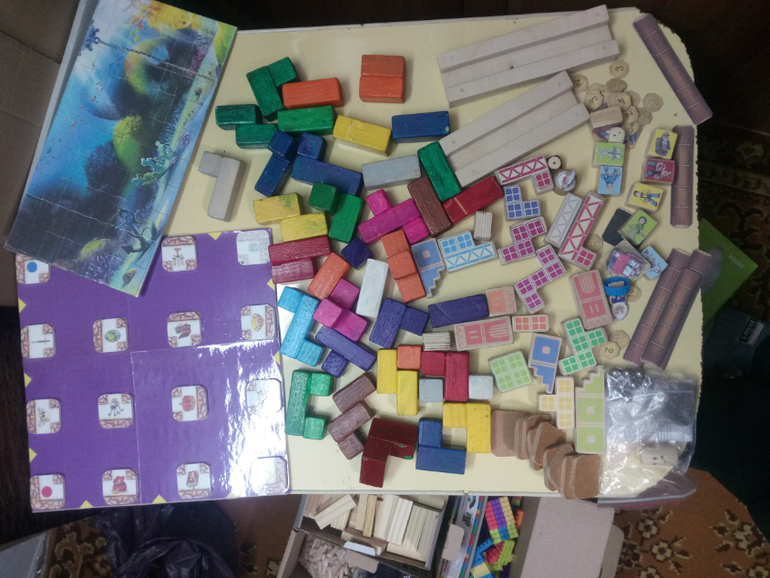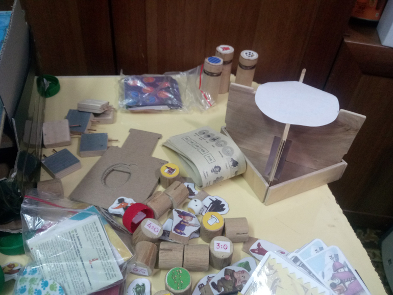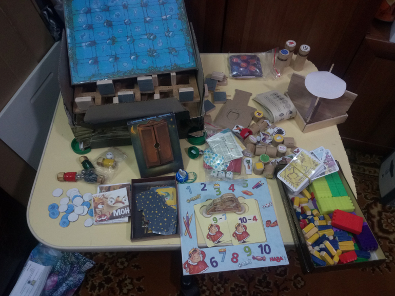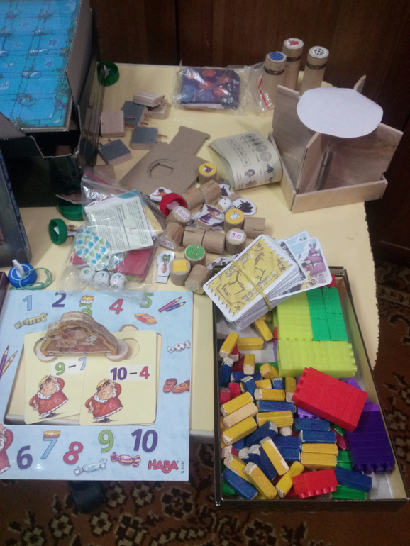 самодельные игрыДостал со всех полок наши игры. Как и сказал, карточные игры не стану выкладывать, но и их несколько коробок. Извиняюсь за кучу-малу, но средний все время норовил у меня что-нибудь стащить, потому и спешка. Названия игр не стесняйтесь, спрашивайте, но я старался делать максимально к оригиналу, потому у постоянных жителей данной рубрики вопросов возникнуть не должно. Еще несколько фото моих материалов, которые, возможно, и будут пущены когда-нибудь в ход. Потому я храню старые фломастеры, карандаши, всеразличные крышки от чего угодно. Так или иначе они пригождаются. Спасибо за внимание.