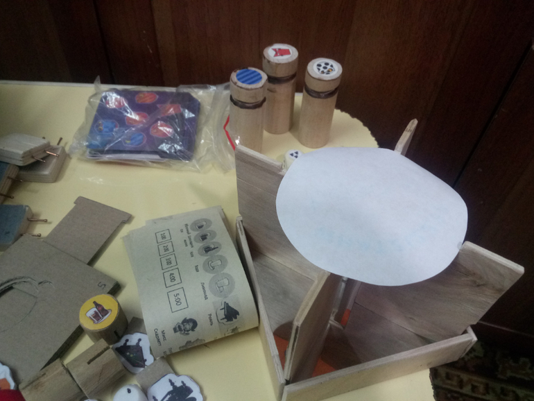 Видно что получаете удовольствие от процесса сотворения игры. Это здорово)))) Подскажите пожалуйста в игре пришельцы в кукурузе основание в которое поле ставиться из чего сделано? Понравилась идея фишек вставленных в крышечку, все так просто и удобно, а я все голову ломала чем бы заменить специальные подставочки в играх