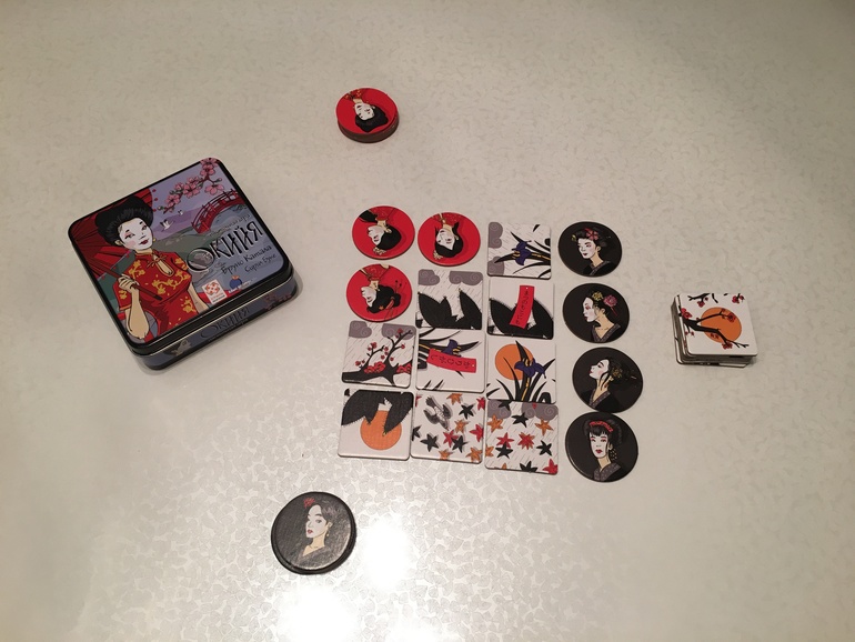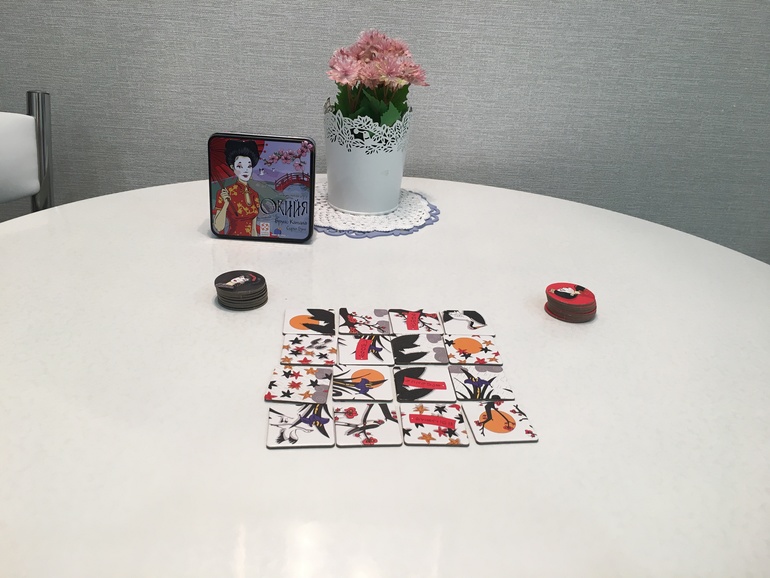Ну и благодаря постам девочек я влюбилась в игру Окийя. Заказа в тот же день в Леонардо. И через пару дней мы уже раскладывали тайлы вечером за чашечкой чая.