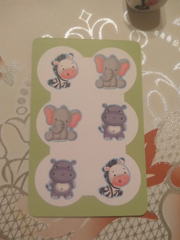Они очень простые.Получаем на руки по 6 карт,на которых изображены 4 разновидности зверюшек зебра,лев,бегемот,слон.Всего их на карте 6,в разных сочетаниях.