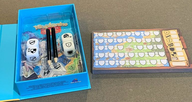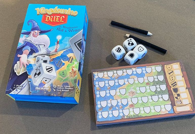 Kingdomino Duel - дуэльная версия хита Kingdomino («Лоскутное королевство»), общий мировой тираж которого перевалил за 750 000 экземпляров. В этот раз Бруно Катала (Bruno Cathala) и Людовик Моблан (Ludovic Maublanc) решили создать игру жанра Roll & Write: игроки по-прежнему, как в Kingdomino и Queendomino, заполняют свои планшеты домино и получает за это очки, вот только в этот раз бросая две игральные кости и зарисовывая выпавшие грани. Для партии требуется 2 участника 8+ лет и 20 минут свободного времени.