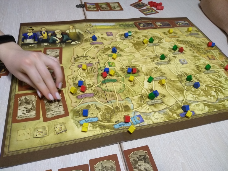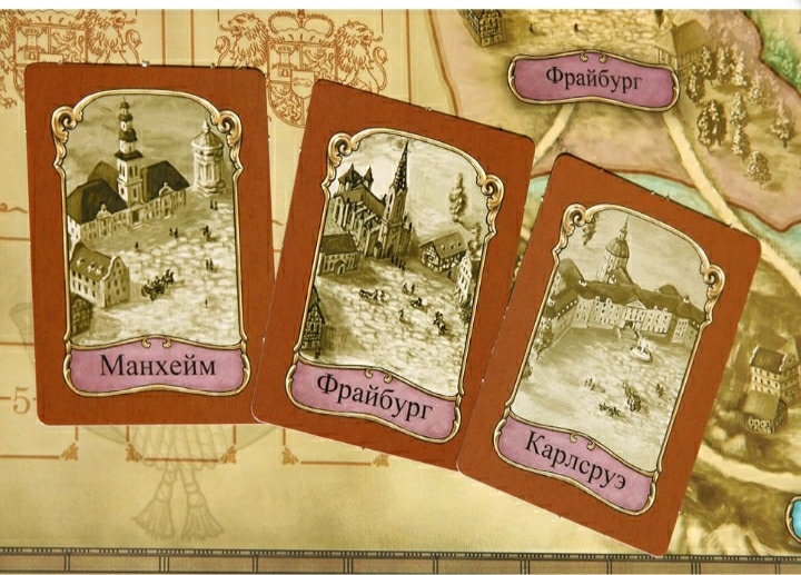 3. Сбросить все шесть открытых карт с названием городов с поля и на их место положить новые. Взять только одну карту и вскрыть одну с руки.
