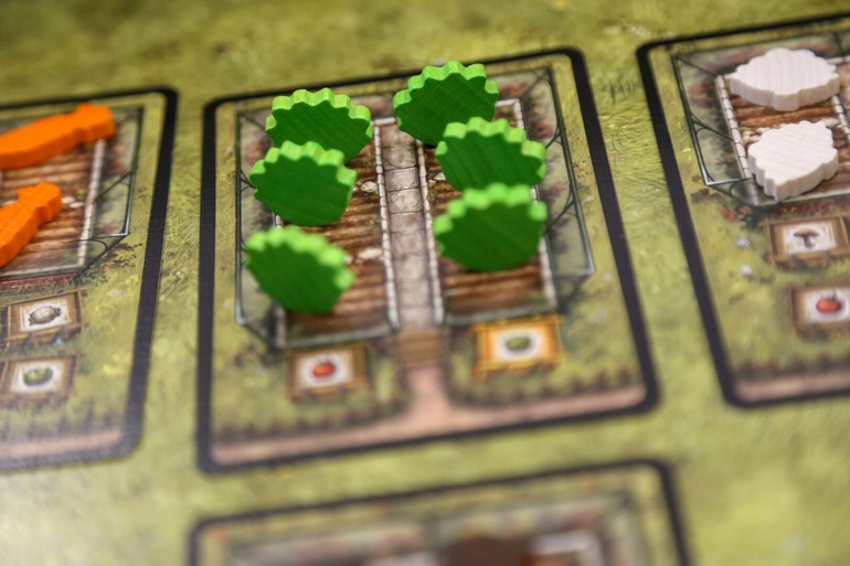 Компоненты игры просто восторг, поле из очень плотного картона, карточки овощей, карты теплиц, все прорисовано, идеальные цвета, мне просто нравится ее рассматривать.