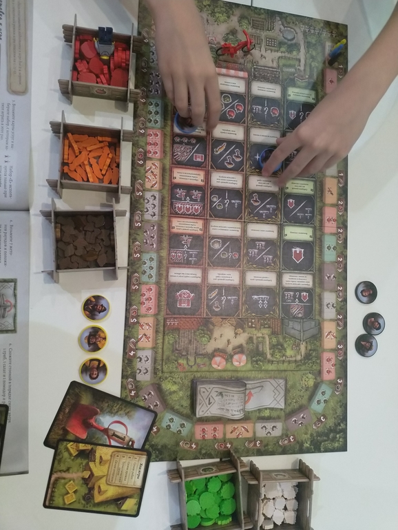 Игра нам очень понравилась, всем, однозначно будем играть. Очень хорошая, спокойная семейная игра. Но по времени пока получилось длинно, играли два вечера по часу, сын уставал. Очень хочу попробовать с мужем двоем. Понравилось ещё двухстороннее поле для разного количества игроков и много разных карт действий, которые разнообразят игру. Есть ещё тайная колода, тоже добавляет в игру действия, но ее ещё не открывали, по правила после нескольких сыгранных партий можно сунуть в нее нос)))