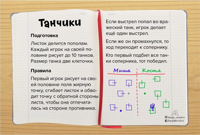 В Танчики учил меня играть папа. Но для игры он брал двойной тетрадный лист и рисовал на нем советские и фашистские танки, очень симпатичные.