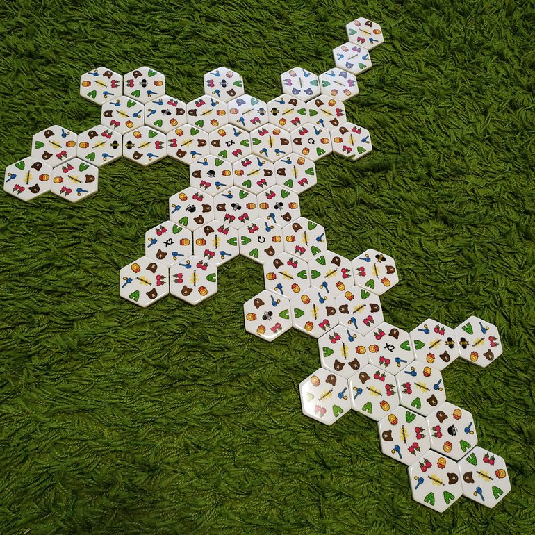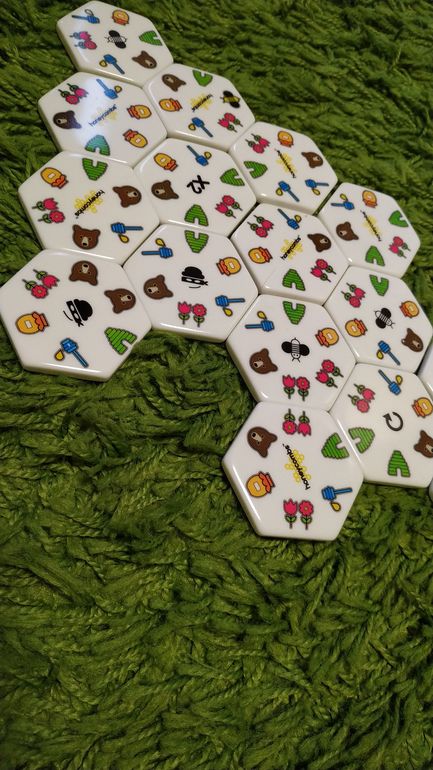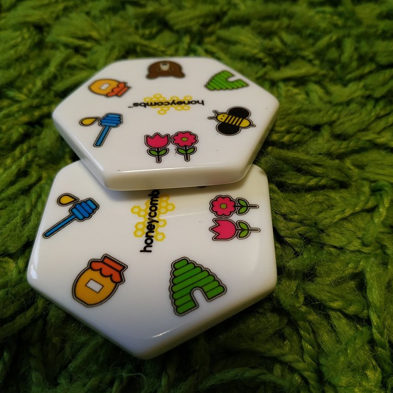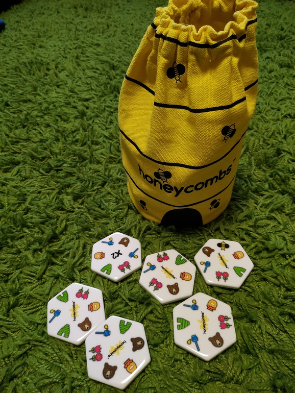 Вторая игра Общие соты. Здесь как домино, каждому по 3 фишки, и на руках все время должны быть 3 фишки, после каждого хода добираешь фишки. Игра заканчивается, когда все фишки выложены в общие соты. При каждом ходе считаются очки. Есть фишки с особенностями, вот это мне ещё очень понравилось.