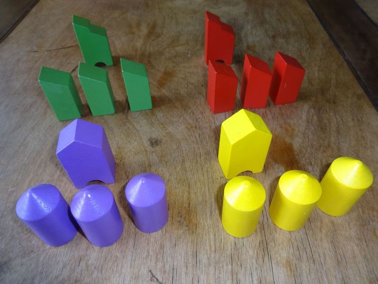 В оригинале вот такие голубятни (фото с bgg). Они, конечно, выглядят более тематично, но, на мой взгляд, диски удобнее: ничего не загораживается.