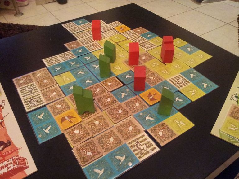 Основное действие: добавить карту из стопки к ранее выложенным на стол картам. Можно либо положить карту рядом так, чтобы хотя бы один квадрат совпадал с другим квадратом, либо закрыть те квадраты, которые есть на карте цели игрока (это называется "одомашнить" диких голубей).