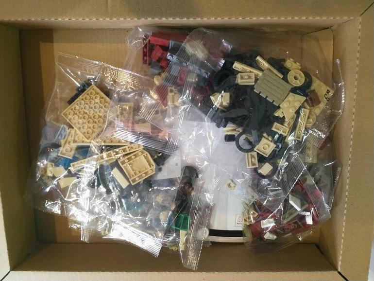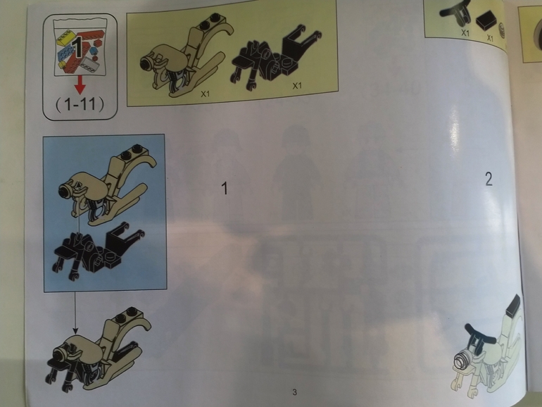 Детали в разных пакетах, пакеты пронумерованы. Есть несколько наклеек. Крокодильчик.