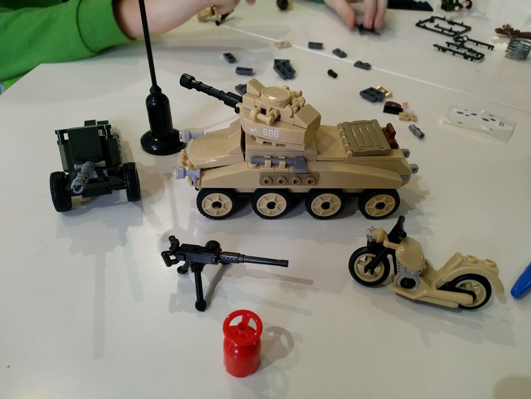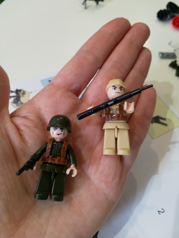 Пришлось искать аналоги, было много куплено на АлиЭкспресс, военных, солдатиков разных времён, автоматы и прочее, конечно были промахи, самое большое разочарование в аналогах, это крепление деталей, они просто отваливаются при нажатии, сын психует, игра не клеится. Slubon для меня тоже далёк от идеала, но если выбирать из аналогов, то чаще всего выбираю его.