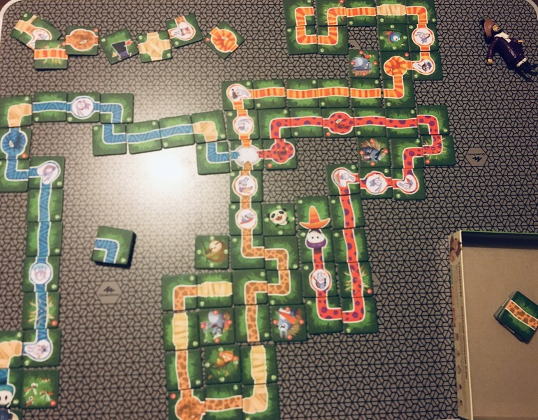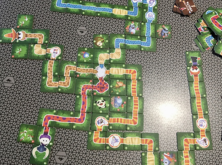 У нас игра появилась в январе этого года. Купила я её после недавнего обзора в сообществе. Даже не знаю, почему купила, ведь изначально игра мне не понравилась по описанию, я совершенно спокойно отказалась от покупки ещё пару лет назад. Но почему-то подумала , вдруг я ошиблась и пропустила хорошую игру. В итоге, нет, не ошиблась. Мне 4 хвоста совершенно не понравились. Сейчас расскажу почему. Каждому игроку в начале игры раздаётся по 7 тайлов. Я не нашла информацию о том, нужно ли их прятать от соперников. Мы не показываем. В правилах написано, что если ходить нечем , то игрок пропускает ход и добирает тайл. Походить нечем, имеется в виду, что на руках присутствуют лишь тайлы с головами, шляпами, москитами, которые выкладываются лишь в конце игры. Все остальные тайлы нужно выкладывать, даже если ты делаешь хорошо сопернику или плохо себе. Но ведь никто не знает, какие тайлы у тебя в руках. Например, у меня есть часть питона с колючками, я могу выложить её себе, что принесёт мне отрицательные очки. Но ведь могу не делать это, а взять тайл и пропустить ход, никто не проверит и не узнаёт. Ещё по правилам можно загонять питонов в тупики, т.е. подпортил тебе ситуацию соперник , нужного квадратика с бинтом у тебя нет, чтобы изменить направление тела питона, и всё, можно до конца игры просто добирать и добирать тайлы, либо выстраивать чужих питонов, что вообще не интересно, ни детям, ни взрослым.