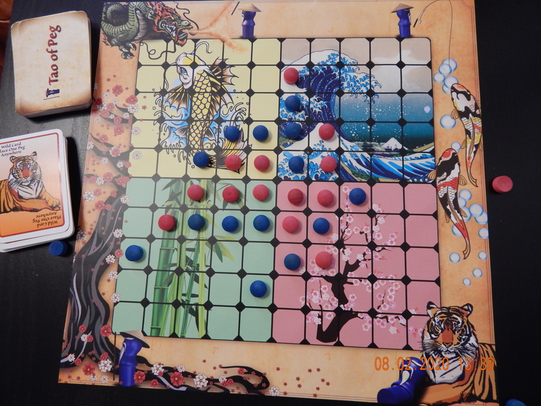 Tao of peg однозначно попал в список наших любимых семейных игр. Стратегия переплелась с элементом удачи, давая тем самым шанс на выигрыш более слабому игроку, но и расслабится в процессе игры не получится.