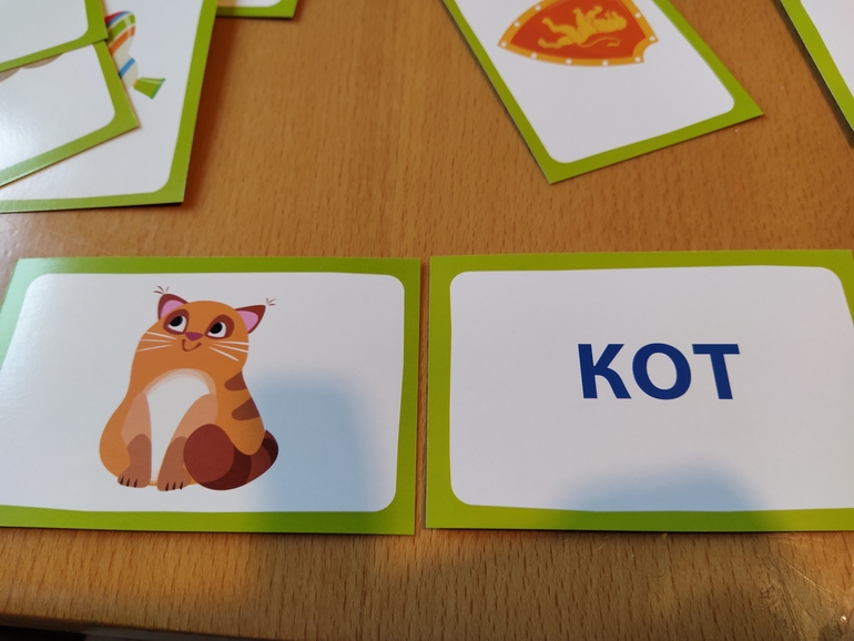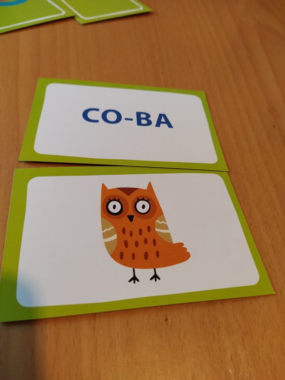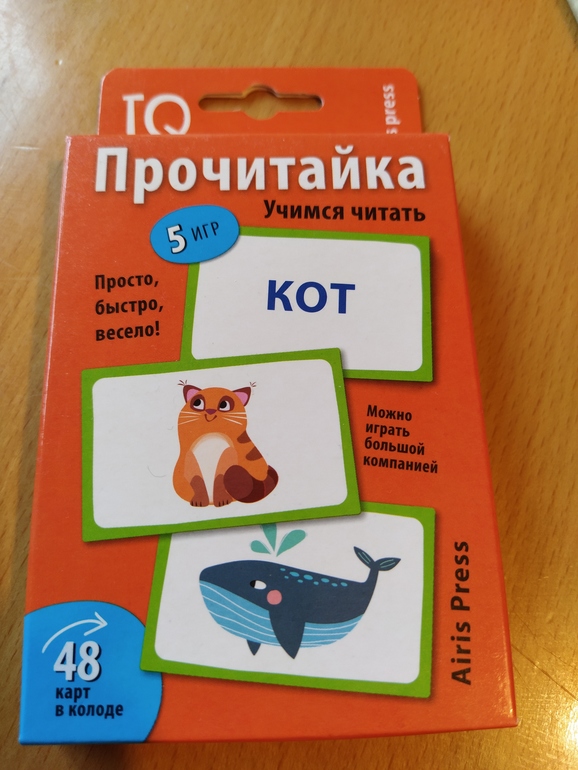 Ещё мне понравился вариант "Искатели", но он для нескольких детей одинакового возраста, внём все карты выкладываются на стол и по мере чтения дети собирают пары, кто больше пар соберёт, тот и победил.