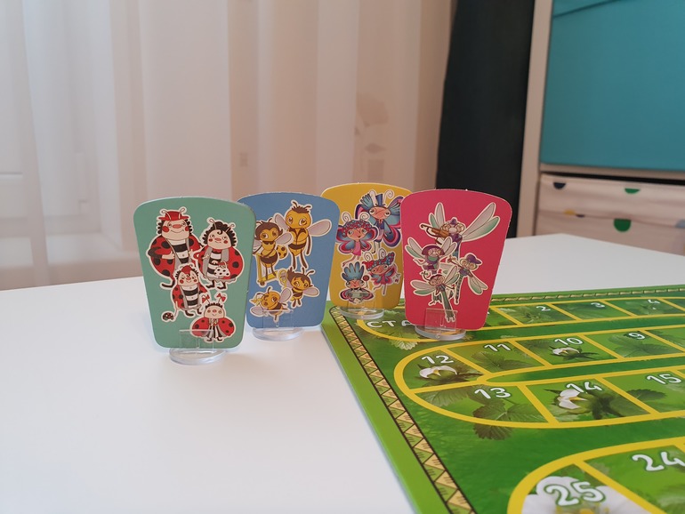 К финишу продвигается фишка-семейка букашек. У каждого игрока своя семья из 4 букашек.