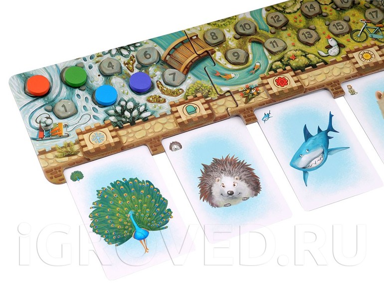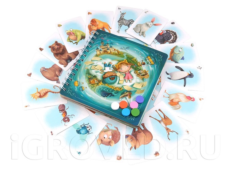 Игра очень необычная от 5 лет. Каждому игроку раздается по пять карт симпатичных персонажей. Выбираем ведущего, который берет книжечку и рассказывает историю. А вот с какими героями предстоит встретиться в истории, будут выбирать игроки из своих карт. Каждый игрок слушает описание встретившегося персонажа и кладет в закрытую на середину стола карту. Когда все игроки определились, карты открываются и помещаются в открытую в специальные места планшета и идёт голосование. Игроки должны голосовать за любых персонажей, кроме своего. Игрок, за чью карту проголосовали передвигает свою фишку вперёд по планшету. Герой, который собрал больше голосов вставляется в специальное место в книжке. По окончании игры детям можно будет уже прочитать иллюстрированную историю. Побеждает игрок, который дальше всего прошел по планшету.
