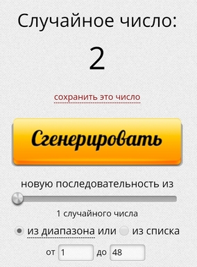В общем, пора разыграть среди участников обещанный приз. Как уже давно сложилось в нашем сообществе, призера выберет Госпожа Удача. Всего отзывов 48, номерки присвоены.