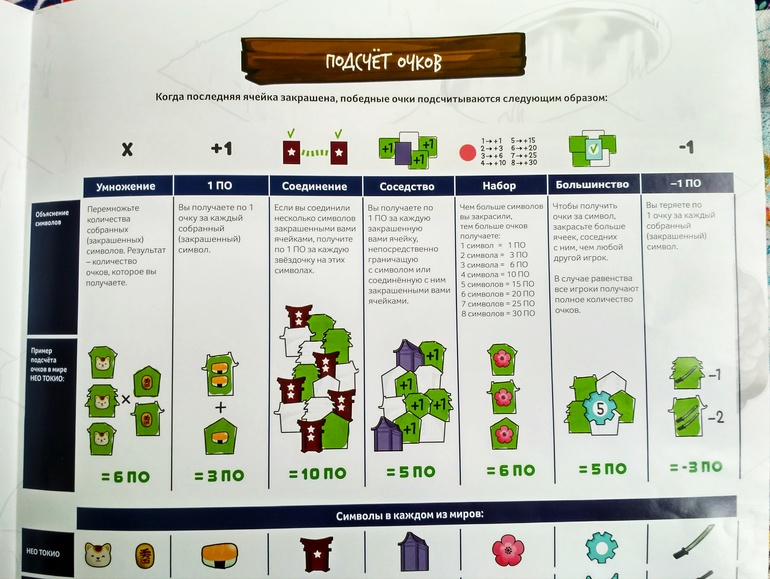 Четвертый уровень играли вдвоем, тут уже условий для получения очков больше. Одни перемножаются, другие просто по одному плюсуются. Есть Соединение и Соседство.