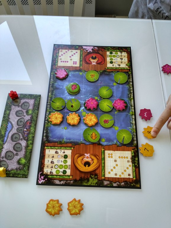 Оценили Хару Ичибан!! Игра куплена год назад, сыграно около 3-х партий, и вроде по правилам играли, но какой-то момент видимо упустили. Игру уже хотела продавать, предложила Ане сыграть ещё партию. И наконец мы поняли и оценили игру!! Очень важен здесь каждый ход, особенно последний ход старшего садовника - перевернуть лилию для следующего раунда! Вот теперь игра заиграла по другому, получили удовольствие от процесса, компоненты конечно всегда нравились!