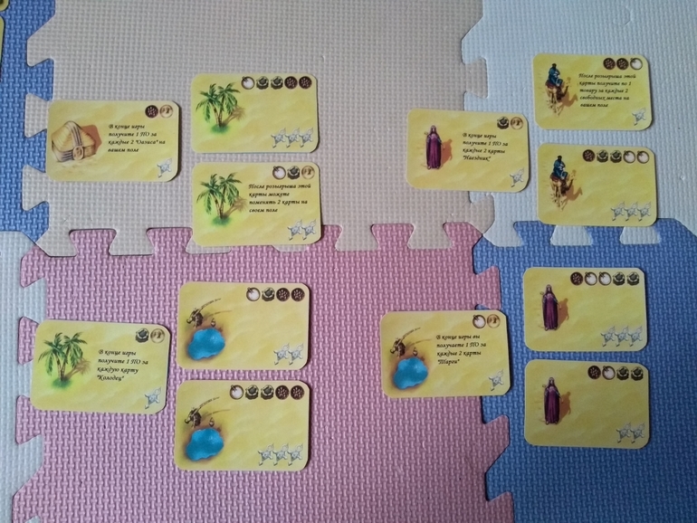 И в конце игры то, как вы расположите эти карты перед собой, тоже принесет вам победные очки или не принесет ничего.