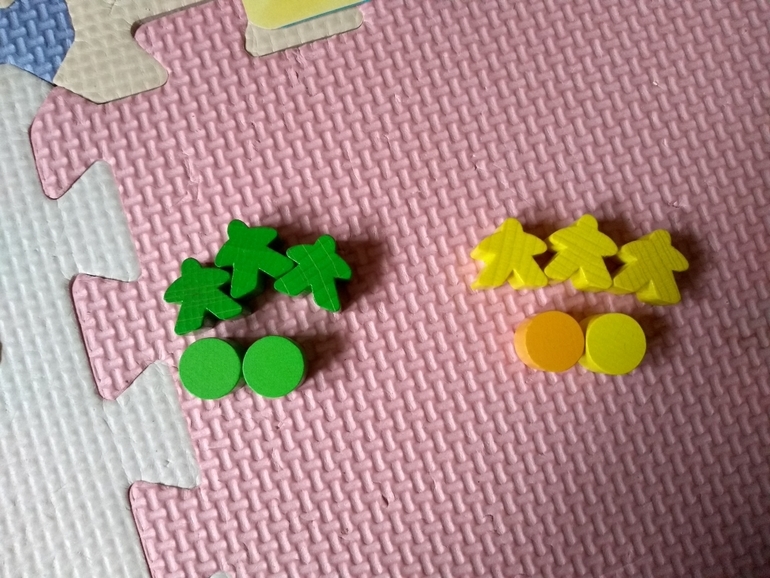 У каждого игрока есть три мипла и два маркера племени (у нас опять Каркассон в расходниках и дочкина мозаика)