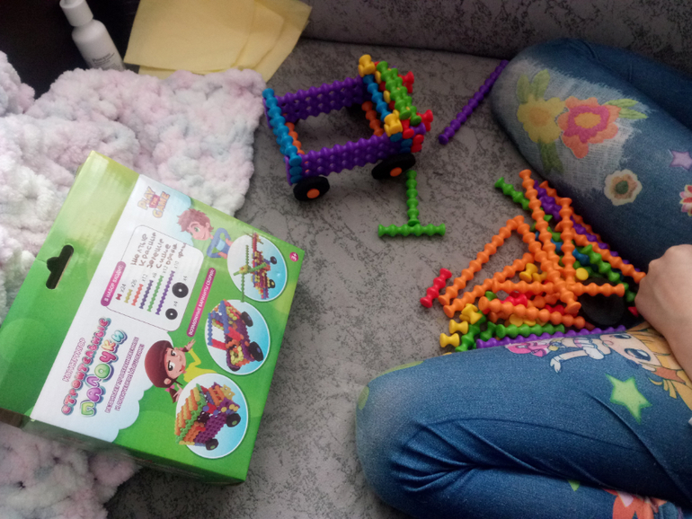 P.S. Ну, и до кучи дополню, чтоб новый пост не пилить. Сегодня доче полегчало (от Нурофена, не иначе) и она решила поиграть в конструктор, который я купил перед НГ в Фикс-прайсе. Не скажу, что он любимый ибо мы так и не особо поняли, как в него играть 3-летке, если у взрослого все из рук валится. Но все равно он имеет право на жизнь и задумка и материалы мне кажутся интересными.