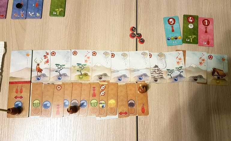 Игра отличная, в чем-то необычная. Но сегодняшняя партия мне не очень понравилась. Все из-за того, что давно не играли и нюансы забыли - я не взяла вовремя одну грамоту, дочка забыла, что грамоты много очков могут принести, и не составляла на своем холсте нужные комбинации (хотя раньше она неплохо играла). Зато у нее весна аж на семи картах подряд зацвела, хотя в основном благодаря грозе.