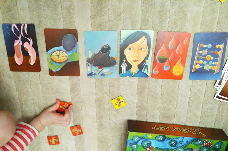 Зато Диксит и одна и вторая выбирают. Дашка отгадывает почти всегда, загадывает линейно, что вижу то и загадываю. Мы с Аней тренируется придумать ассоциации по сложнее, не всегда это получается.