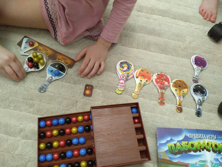 Вчера играли пока все колбы не закончатся. И Даше в этой игре есть место, она шарики в колбы выкладывает то мне то Ане. Надо будет с мужем втроём попробовать, он согласен.