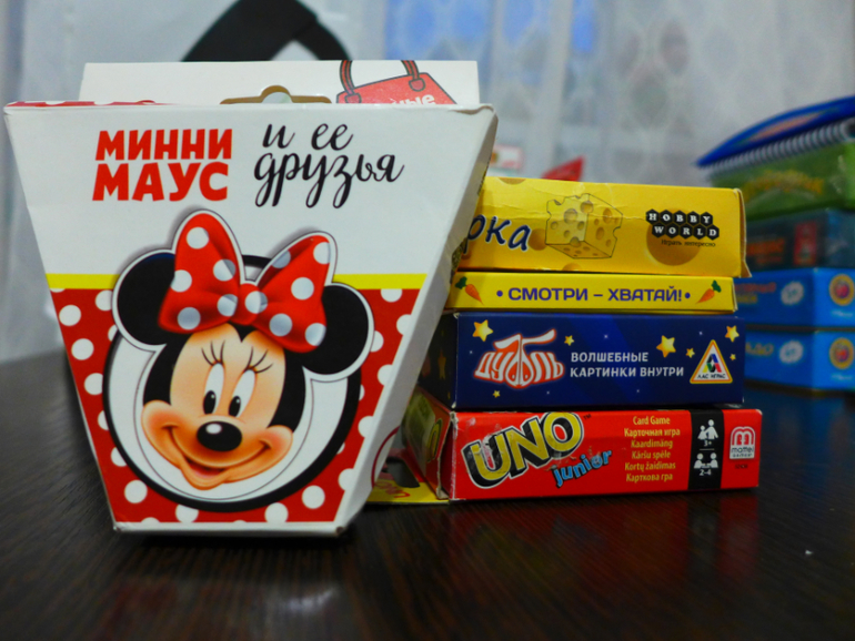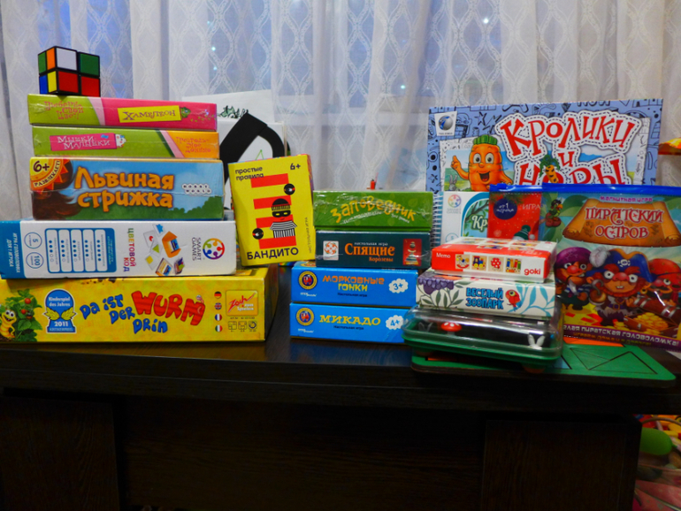 Во все игры на фото играно уже точно не менее 10 партий)) И если честно, они уже порядком надоели, хотя дети конечно и рады, но тоже просят что-то новое. Надеюсь, что ремонт скоро закончится, и мы вернёмся. Могу представить как дети накинуться на те игры, которые остались дома где-то в коробках. В последнюю неделю сюда к родителям приехали ещё пара внуков из Мск (6,2 и 3,5), и мы вынуждены были оставить настолки. Оказалось, что они совсем не умеют играть - очень близко к сердцу принимают проигрыши, не могут разобраться в правилах, объяснить их друг другу. В порыве страсти были помяты 3 пары в карточных мемори и одна карточка порвана в Секретах планеты, Собаки (её нет на фото, бабушка её спрятала от детей). Печально(( И что с детьми не увлекаются этим видом досуга (хотя сестра всё же имеет порядка настолок дома, я смогла её заинтересовать) или мало времени времени уделяют, они чаще просят у родителей в телефончик поиграть. И тем, что наши игры (пусть и недорогие) повредили. Теперь думаю, что в таких случаях дома нужно иметь что-то антивандальное - деревянное и пластиковое.