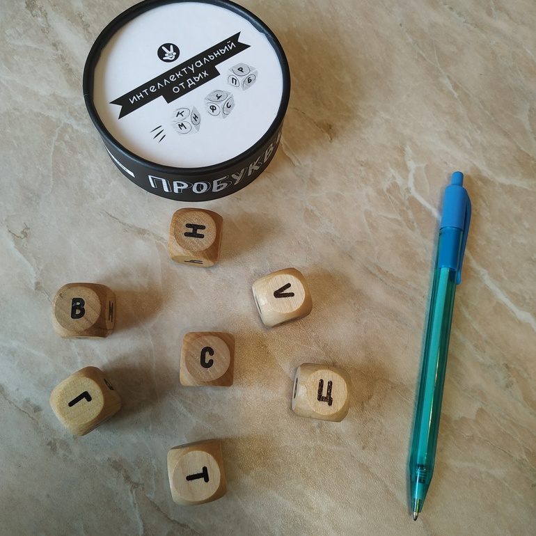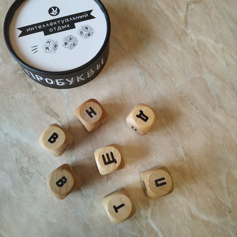 🚩 Экспресс вариант. Нам он подошёл больше. Бросаем кубики, договариваемся о числе букв в слове, например 5. Кто первый придумал, называет вслух слово, забирает любую букву себе и так далее дальше .
