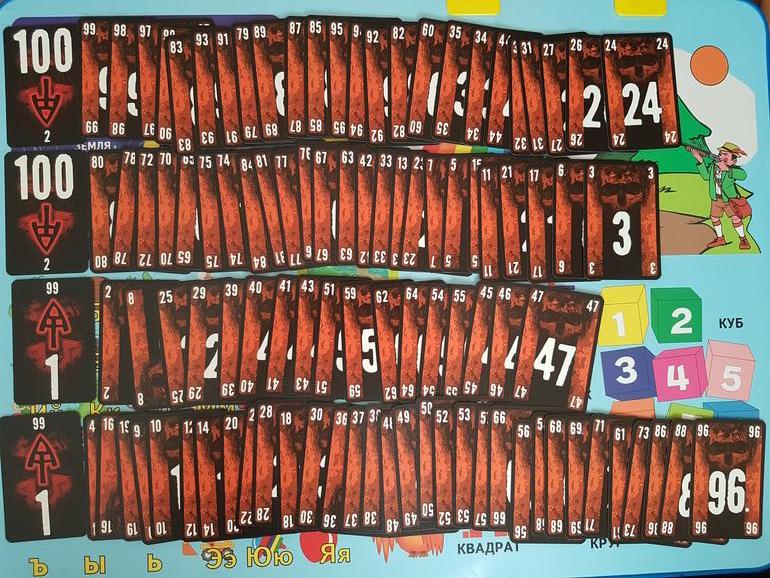 И не так-то просто в итоге разложить "по полочкам" эту колоду. Бывает, в начале игры приходят на руку значения 40, 50, 60, которые и выложить некуда, а позже двойка и десятка, которые уже пропущены или понадобятся только в самом конце ряда.