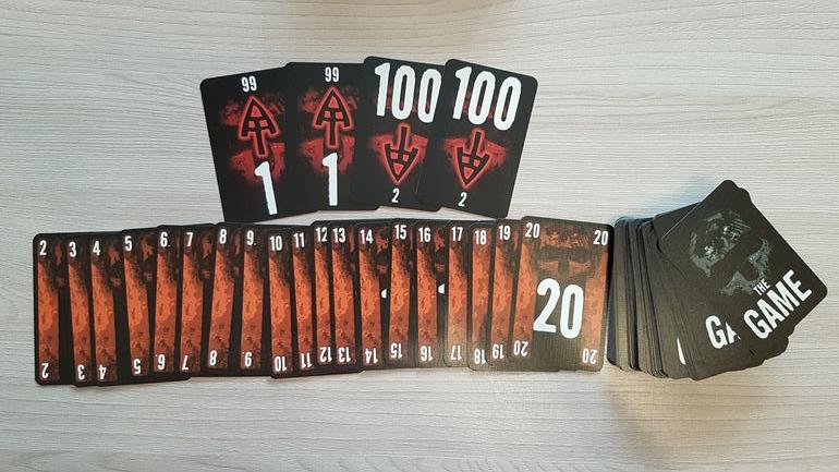 В коробке колода карт со сквозной нумерацией от 2 до 99 и 4 начальные карты (две единицы и две сотни).