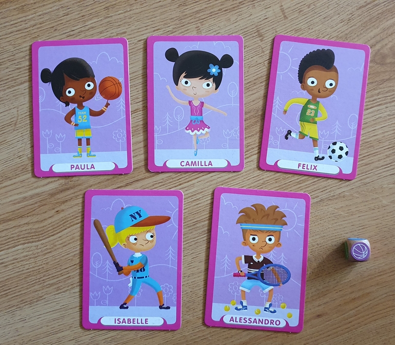 Используются обе колоды карт, кубик не понадобится. Все карты перемешиваем, игрокам раздаем по пять карт рубашками вверх. Следующие шесть карт выкладываем на стол вверх лицевой стороной. Оставшуюся колоду кладём в центр стола рубашками вверх. Цель игры - первым собрать команду из пяти разных детей, объединенных общим увлечением (спортом, музыкой и т.п.) Игроки сами решают, какую команду будут собирать, и могут менять решение в процессе игры. В каждый ход игрок обменивает одну карту: одну из тех, что у него на руках, не показывая остальным, убирает под низ колоды и берет вместо нее другую либо из числа открытых шести на столе, либо вслепую из колоды. Когда кто-то берет одну из шести открытых карт со стола, на ее место выкладывается карта из колоды. Побеждает тот, кто первым соберет свою команду.