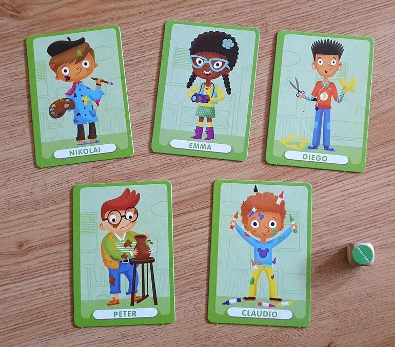 Внутри колоды карточки разделяются на пять категорий, каждой категории соответствует свой цвет фона и рамочки (на лицевой стороне карты). Категории - это виды увлечений детей: музыка, спорт, уход за животными, кулинария и творчество. Эти же пять категорий при помощи символов и цветов отражены на гранях кубика, шестая грань - грустная рожица (пропуск хода).