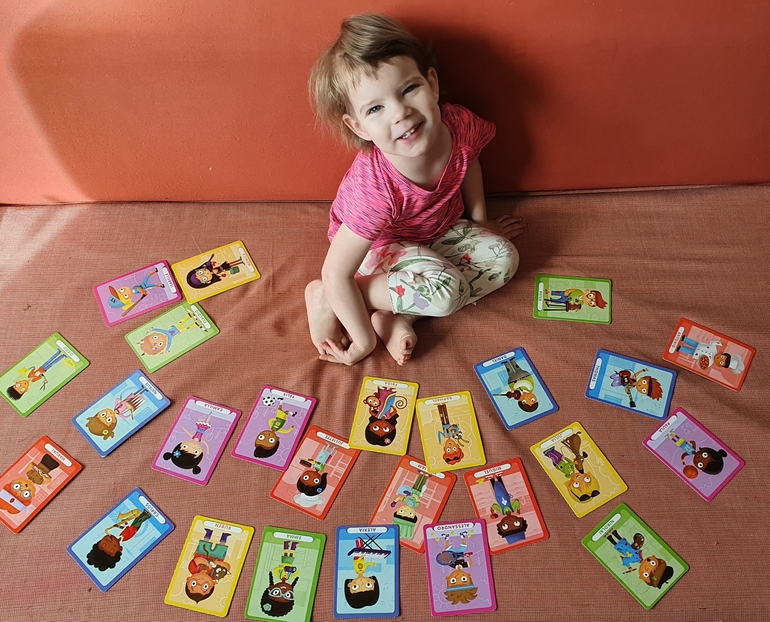 Пробовали играть по правилам а-ля крокодил - тянуть карточку и без слов изображать нарисованного на ней ребенка и его увлечение, чтобы другие угадывали. Но пока это сложно для дочки, пробалтывается 🙊
